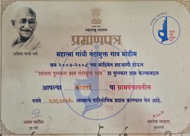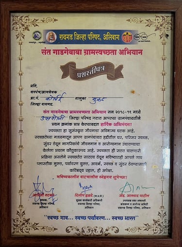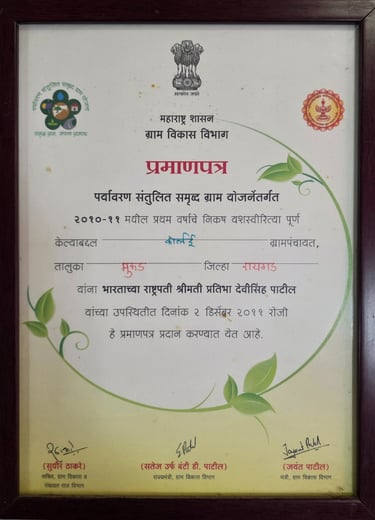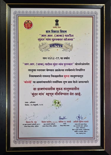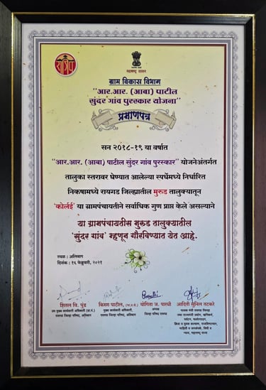 कोर्लई ग्रामपंचायतीने गेल्या काही वर्षांत केवळ विकासाची कामेच केली नाहीत, तर गुणवत्ता आणि पारदर्शकतेच्या जोरावर अनेक प्रतिष्ठित पुरस्कार मिळवून गावाची किर्ती वाढवली आहे. हे पुरस्कार म्हणजे गावातील प्रत्येक नागरिकाने दिलेल्या सहकार्याचा आणि आमच्या संपूर्ण टीमच्या अथक परिश्रमाचा सन्मान आहे. कोर्लई गावाला आदर्श ग्राम बनवण्याच्या आमच्या संकल्पाची ही पोचपावती आहे.
