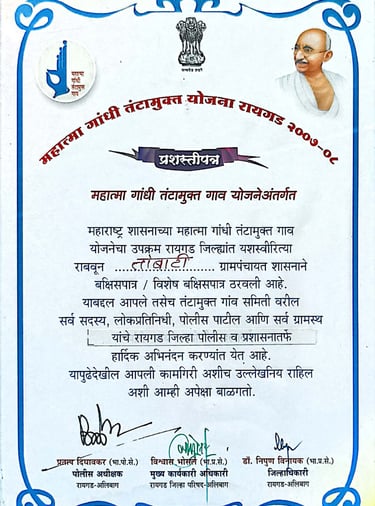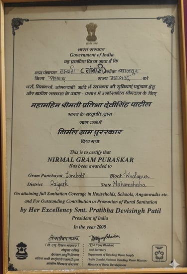 तांबाटी ग्रामपंचायतीने गेल्या काही वर्षांत केवळ विकासाची कामेच केली नाहीत, तर गुणवत्ता आणि पारदर्शकतेच्या जोरावर अनेक प्रतिष्ठित पुरस्कार मिळवून गावाची किर्ती वाढवली आहे. हे पुरस्कार म्हणजे गावातील प्रत्येक नागरिकाने दिलेल्या सहकार्याचा आणि आमच्या संपूर्ण टीमच्या अथक परिश्रमाचा सन्मान आहे. तांबाटी गावाला महाराष्ट्रात आदर्श ग्राम बनवण्याच्या आमच्या संकल्पाची ही पोचपावती आहे.